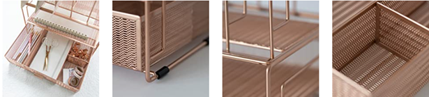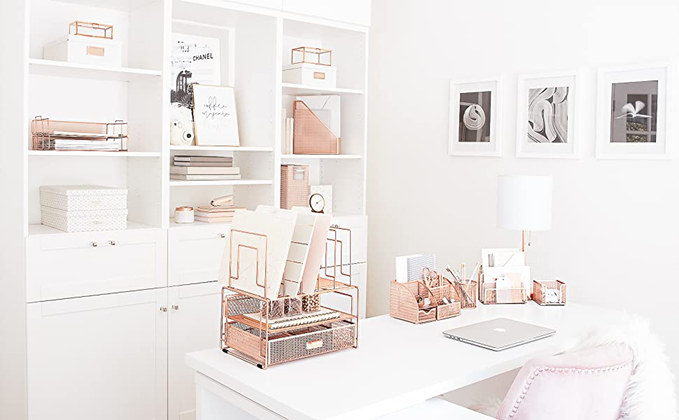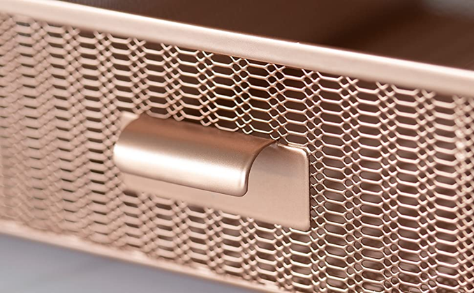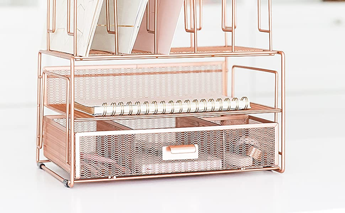 • MODERN, SPACE SAVING DESIGN: Organization does not have to be difficult. Made of metal finished in rose gold and featuring a unique mesh design, this Vertical and Horizontal File and supplies organizer with drawer and letter sorter keeps things organized and saves space.