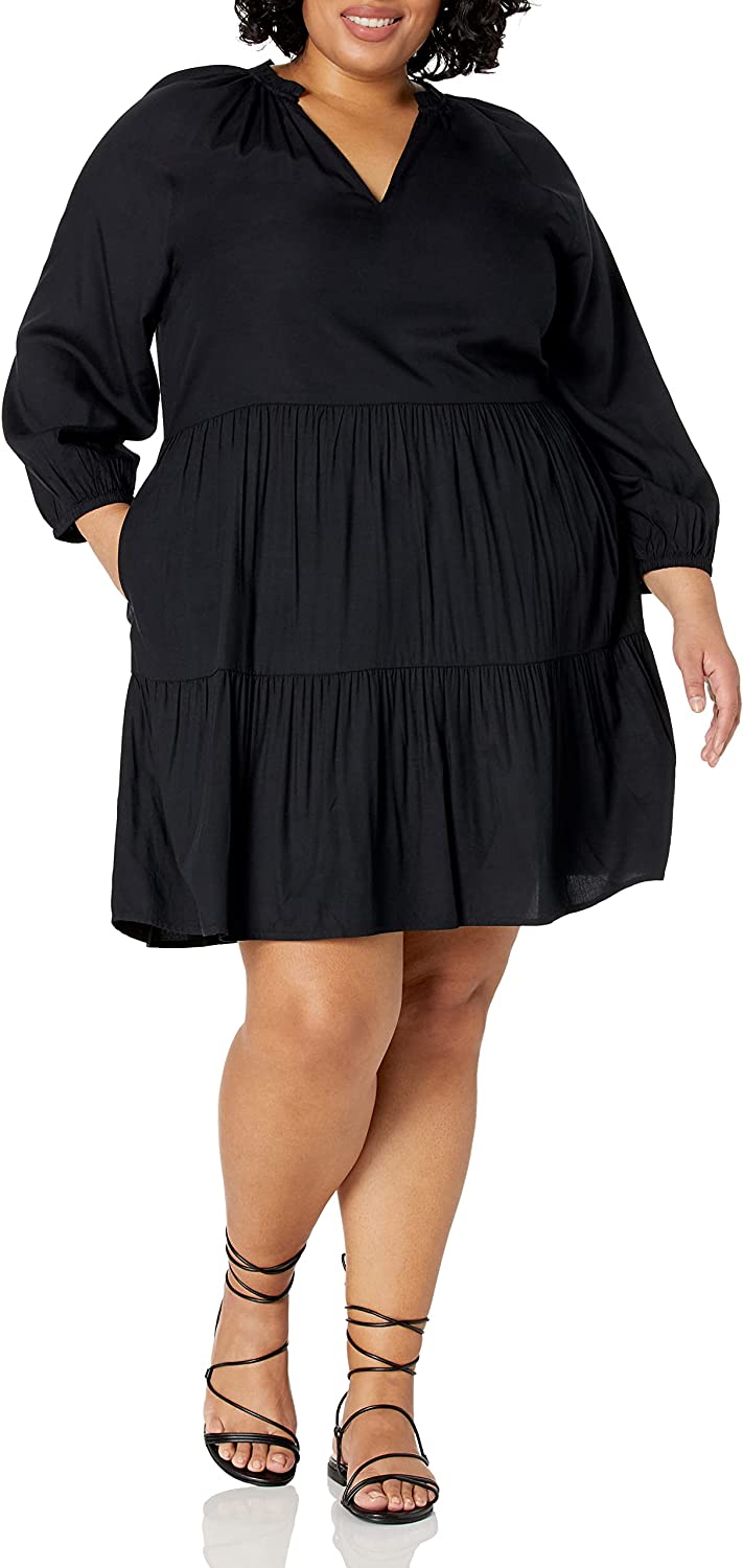 The Drop Women's @caralynmirand Ruffle-Neck Tiered Mini Dress