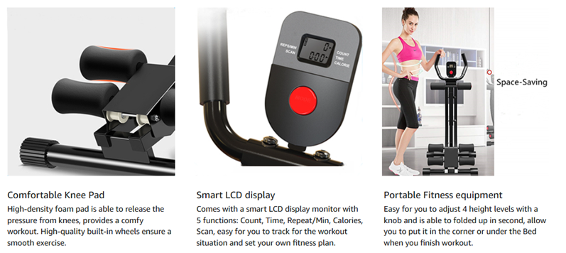 • 【LCD Display】The smart LCD training monitor circularly shows the calories burnt, workout time and repetitions.