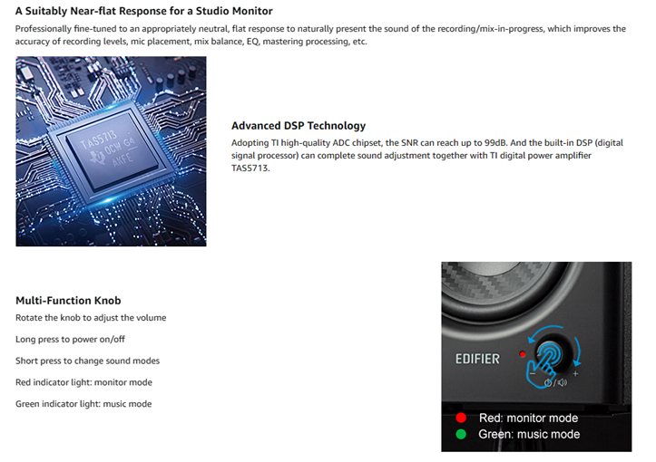 - TRUE STUDIO MONITOR – Based on the highly reviewed Edifier bookshelf speakers, professionally fine-tuned to a near-flat responsive curve for artists and music creators.