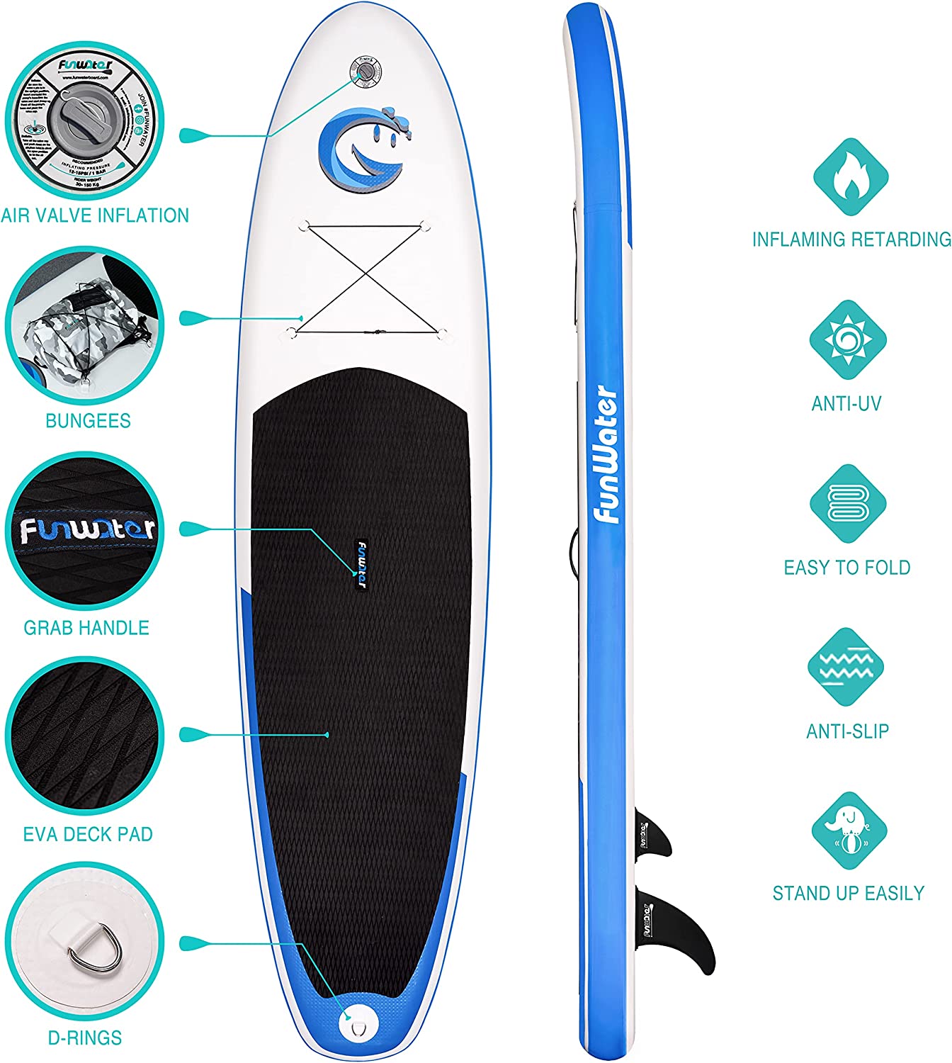 - 【User Scenarios】Funwater paddle boards is your first choice for water sports.Funwater inflatable paddle boards (SUP) are suitable for all skill Levels to enjoy themselves, explore, or adventure in water areas.