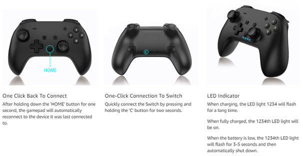 ?【Dual Motors and Six-Axis Gyroscope for Switch】This gaming controller has a one-button connection to the Switch function, you can easily connect by long pressing the c button. The super sensitive 6-axis gyro sensor provides precise motion control. Plus dual vibration motors with timely shock feedback, switch controller make you feel the ultimate gaming experience.