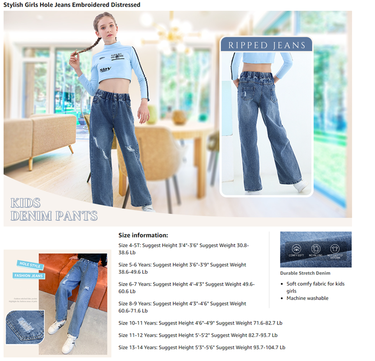 • Matching: Girls denim pants Elastic Stretch jeans are perfect to pair with any shirts or t-shirt (short or long sleeve), It will become a quick fave in her wardrobe.
