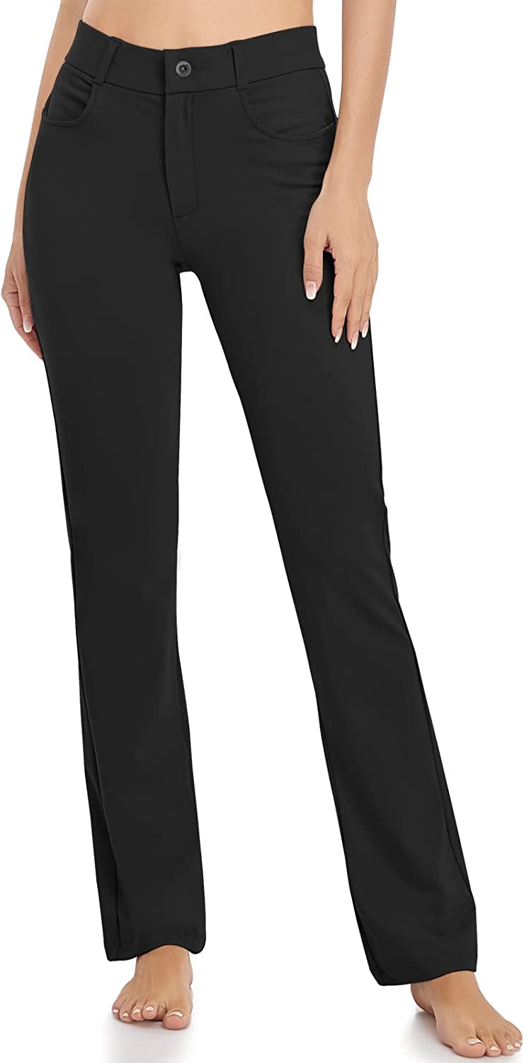 BOOTLEG & BUTTON FLY STYLE: Our bootcut yoga dress pants have zipper fly with button closure, feature both high-waist and tummy control, suitable for each body type. Slight flare at cuffs design to create a leg-lengthening silhouette, giving a streamlined look.