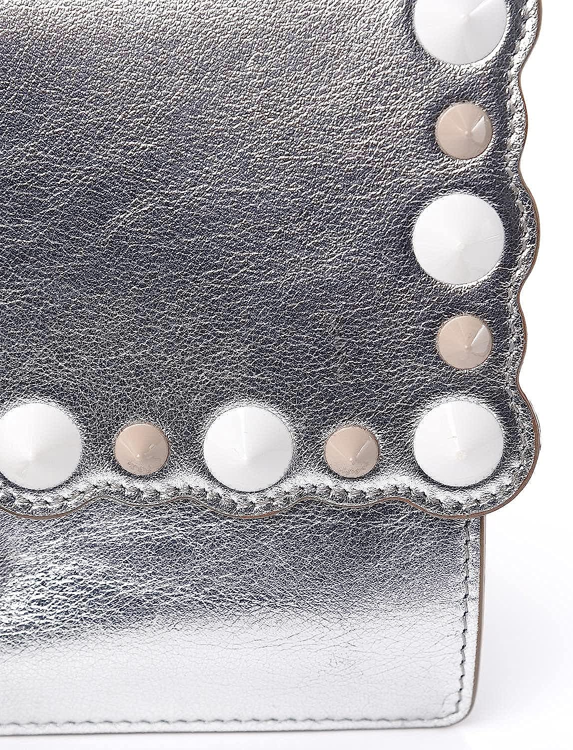 Fendi Kan I Metallic Silver Calfskin Scalloped Studded Small Shoulder Bag 8M0381