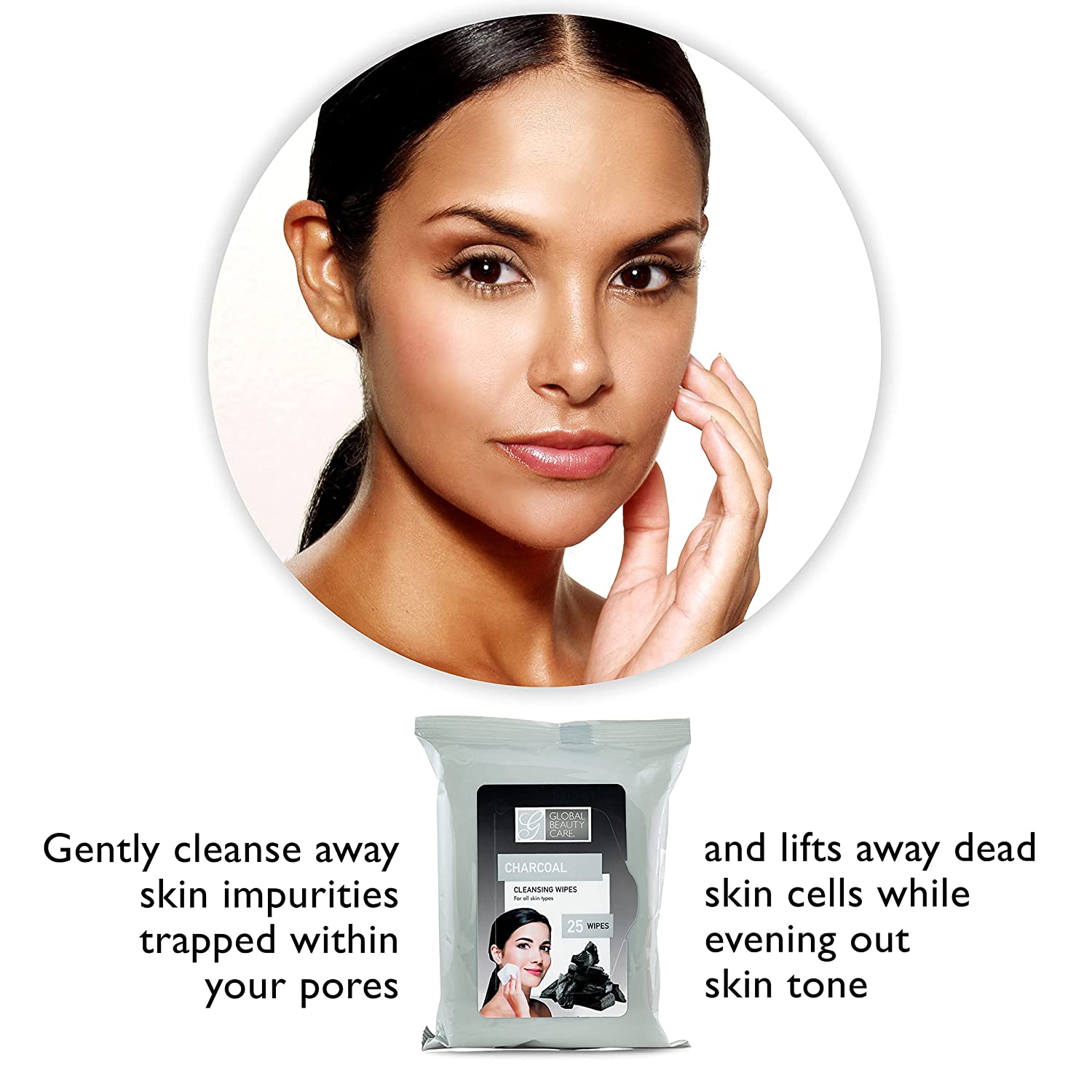 Global Beauty Care Bulk Cleansing Wipes Premoistened 4 Pack of Charcoal Cleansing Cloths Makeup Removal Wipes - Great For Travel Toiletries - 100 ct.(4-Pack)
