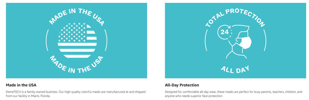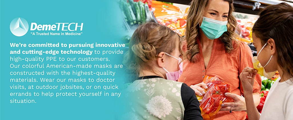 • SAFETY FACE MASK: At DemeTECH, your safety is our top priority. Each American-made face mask uses only the highest-quality materials. The ear-loop face mask slides over your ears to secure the mask to your face.