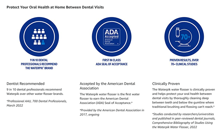 • DENTIST RECOMMENDED: 9 in 10 dental professionals recommend the Waterpik brand. Waterpik is clinically proven and the first water flosser brand to earn the American Dental Association (ADA) Seal of Acceptance.