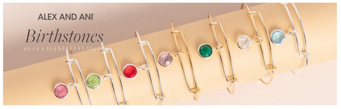 Alex and Ani Birthstones Expandable Bangle for Women, Birthday Crystal Charms, Shiny Finish, 2 to 3.5 in