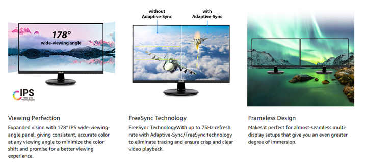 • Up to 75Hz refresh rate with Adaptive-Sync/FreeSync technology to eliminate tracing and ensure crisp and clear video playback