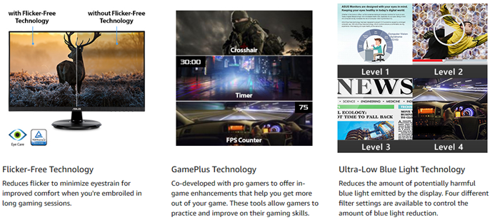 • ASUS Eye Care technology features TÜV Rheinland-certified Flicker-free and Low Blue Light technologies to ensure a comfortable viewing experience