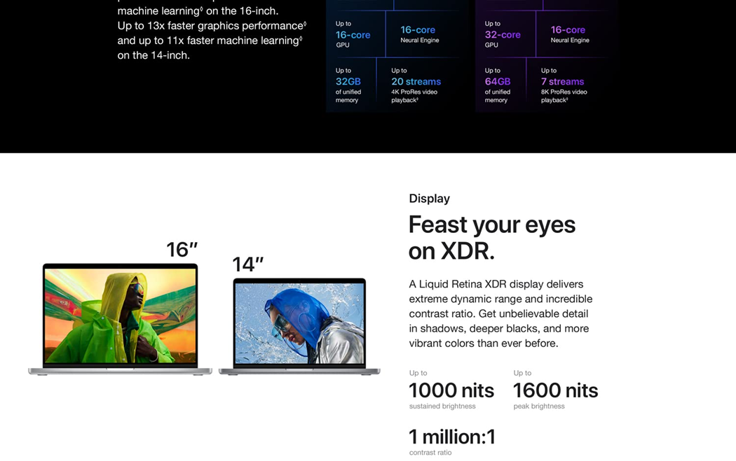 Stunning 14-inch Liquid Retina XDR display with extreme dynamic range and contrast ratio