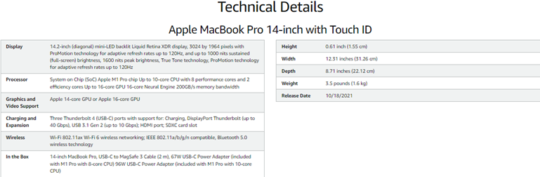 Apple 2021 MacBook Pro (14-inch, M1 Pro chip with 10?core CPU and 16?core GPU, 16GB RAM, 1TB SSD) - Space Gray