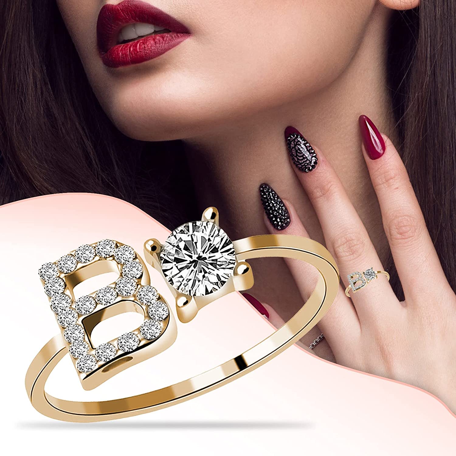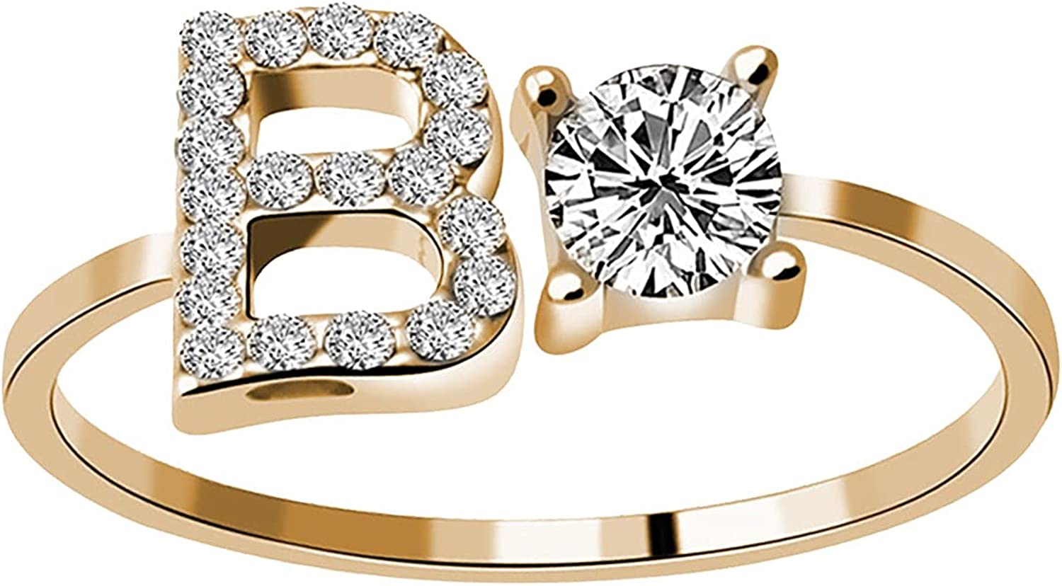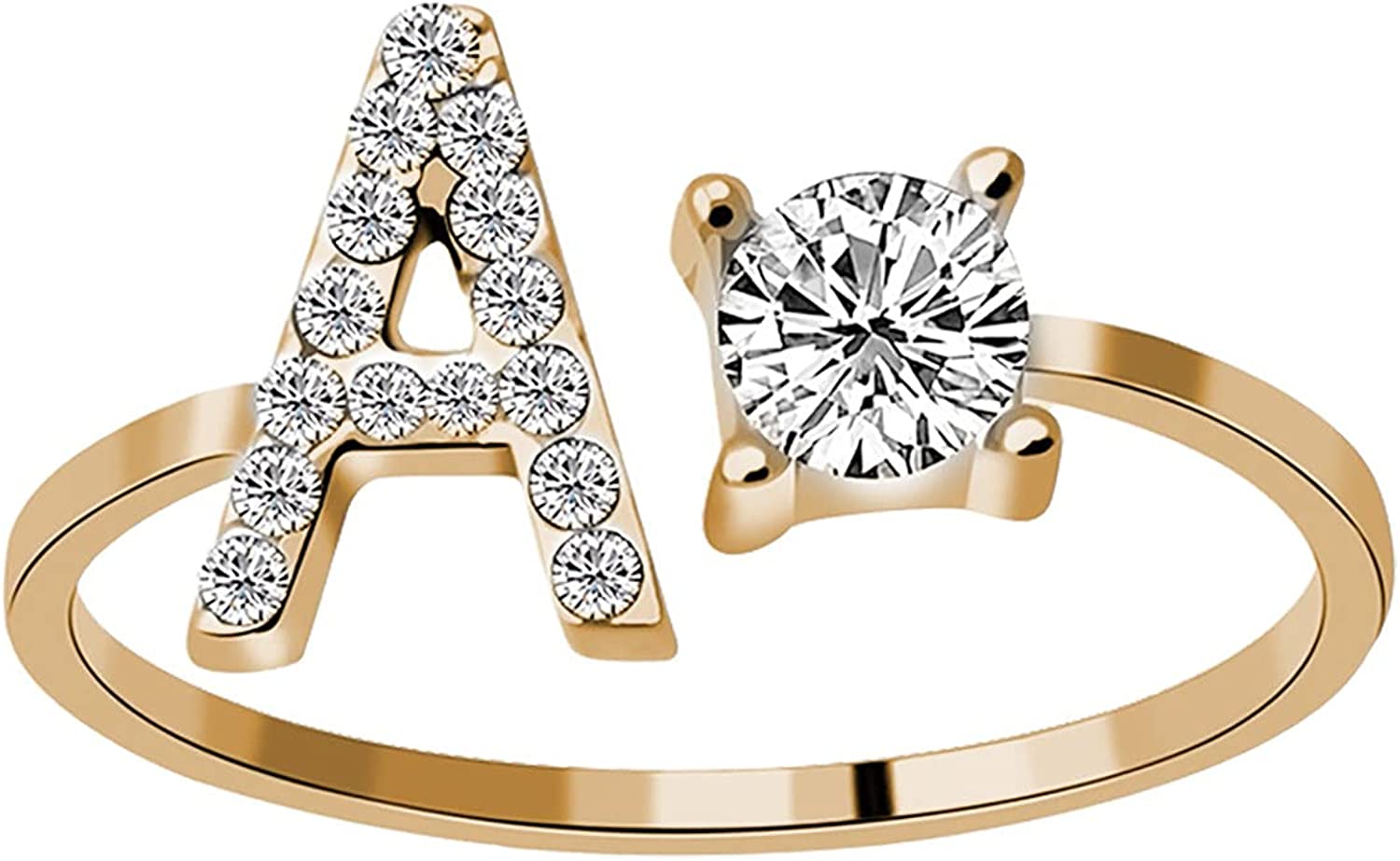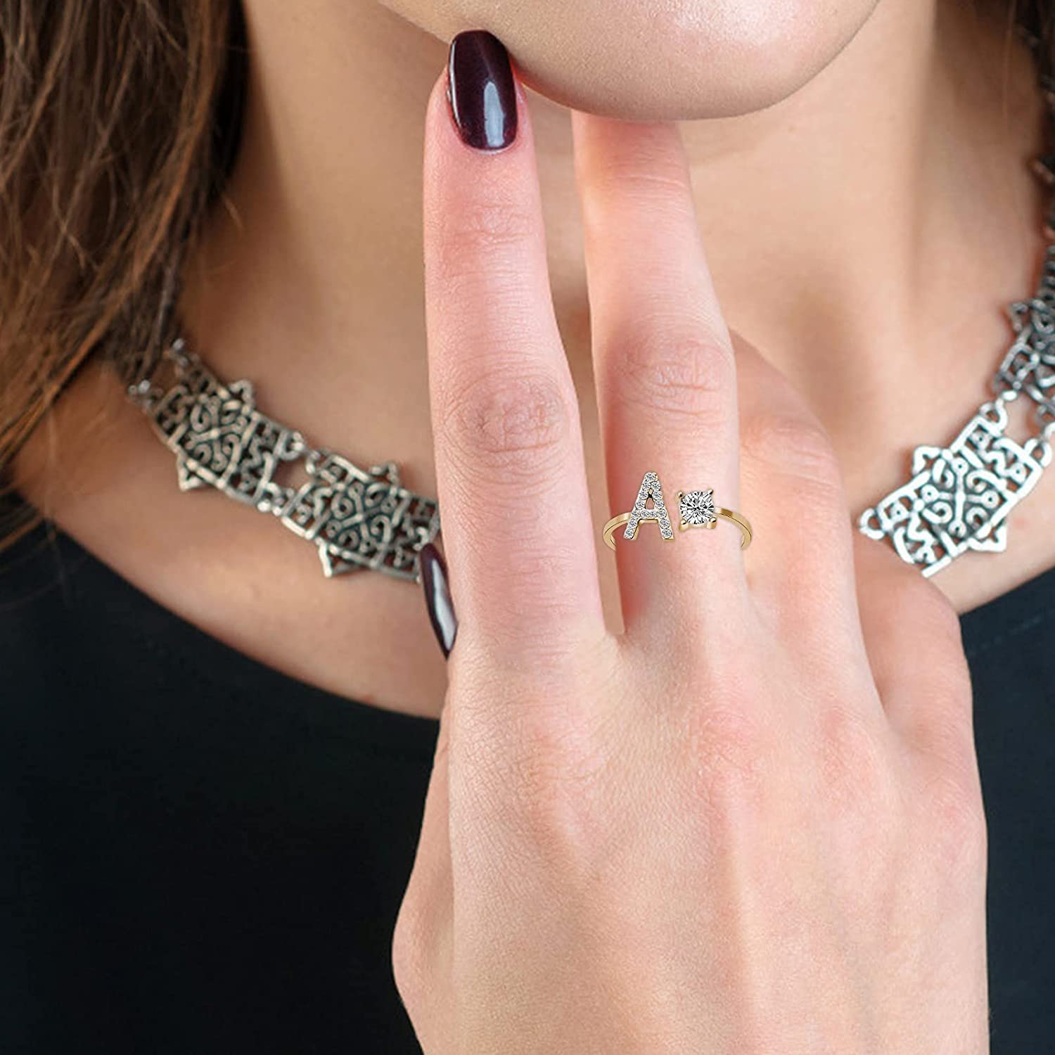 ManRiver 26 Letters Rings for Women - Diamond Rhinestone Studded Zirconia Open Adjustable Rings Jewelry Accessory Gifts