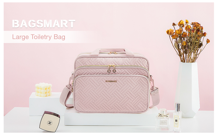 BAGSMART Toiletry Bag, Travel Toiletry Bag for Women, Water-resistant Cosmetic Makeup Bag, Large Capacity Travel Organizer for Full Sized Toiletries and Cosmetics