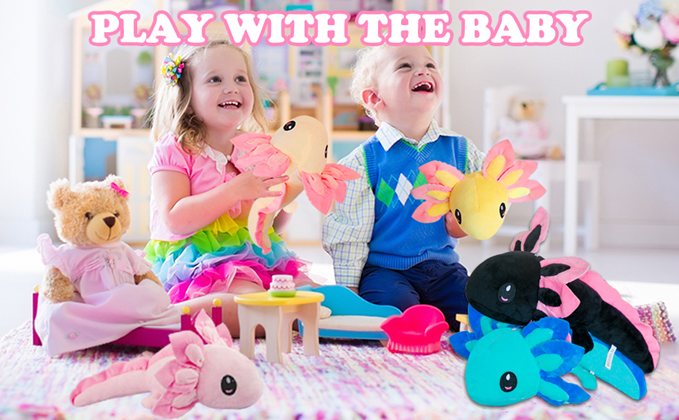 Putrer 2Pcs Axolotl Plush Toy,Axolotl Stuffed Animal,Salamander Axolotl Plush Doll Gifts for Boys Girls(2pcs (Blue+Black))