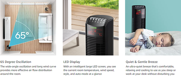 • Simple Controls: Remotely control the strength and oscillation from your bed or sofa; view the room temperature, current mode and speed settings on the large LED screen (light turns auto-off after 30s in sleep mode)
