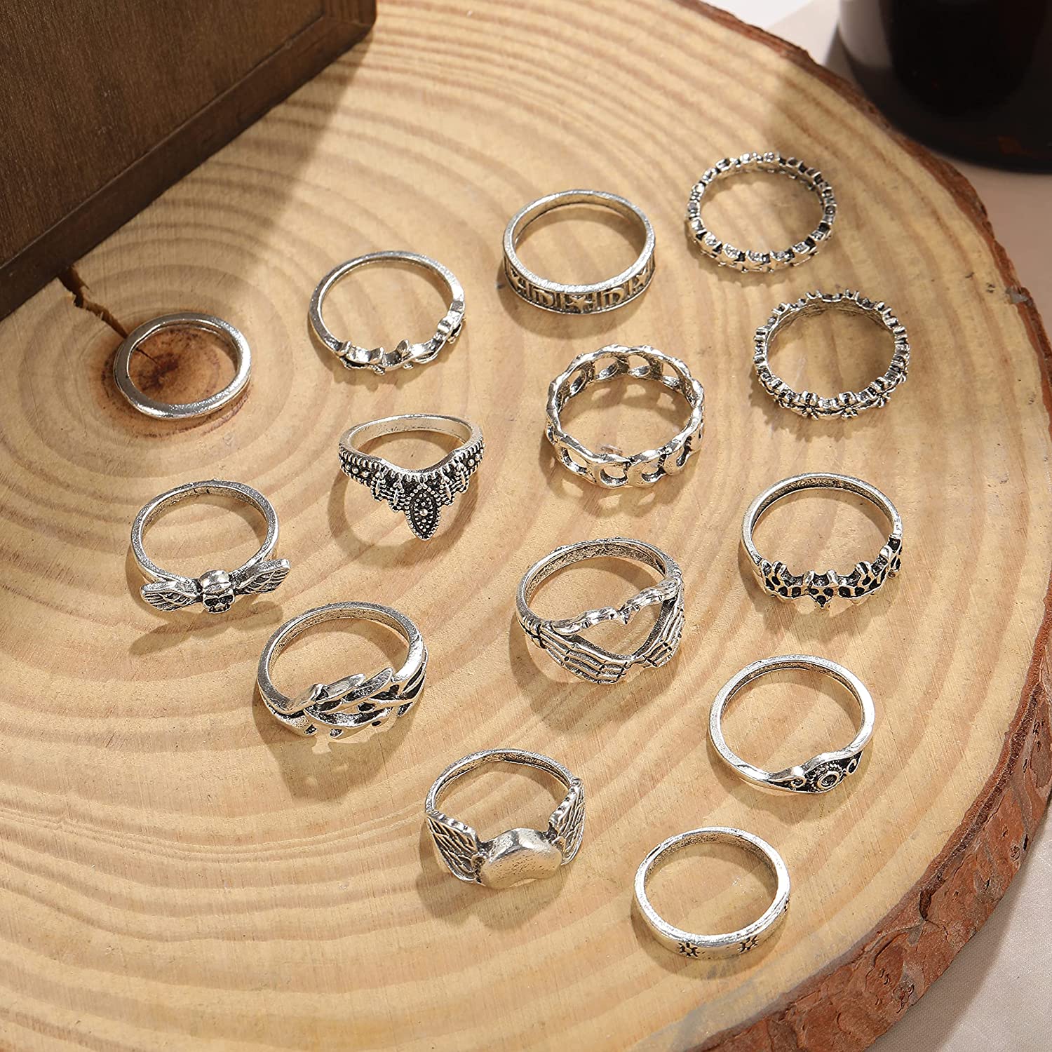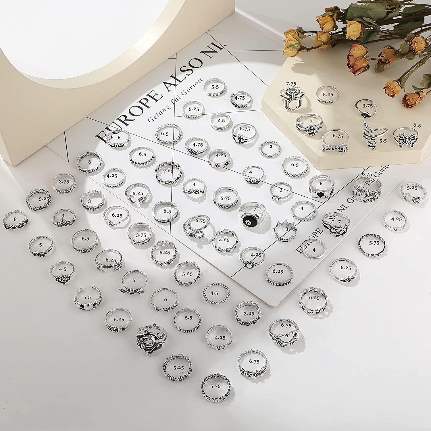 ShowAgain Silver Vintage Goth Punk Rings Set for Men Girls Women, Cool Gothic Ring Pack, Trendy Stackable Boho Chunky Knuckle Emo Full Finger Rings, Adjustable Open Snake Butterfly Ace Eboy Y2k Ring