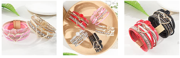 Long tiantian Multilayer Wrap Leather Bracelet Heart Modern Boho Bracelet with Magnetic Clasp Cuff Rhinestone Leather Bracelets for Women