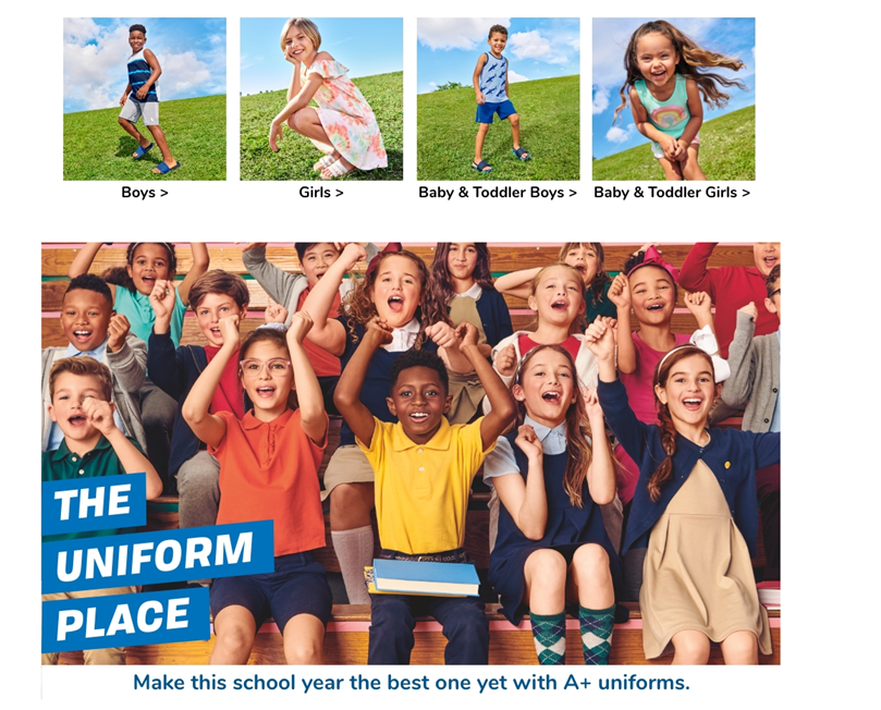 • THE CHILDREN'S PLACE — We offer a huge selection of kid's clothing! Shop us for jeans, shorts, leggings, chinos, polo shirts, dresses, uniforms, pajamas, and accessories.