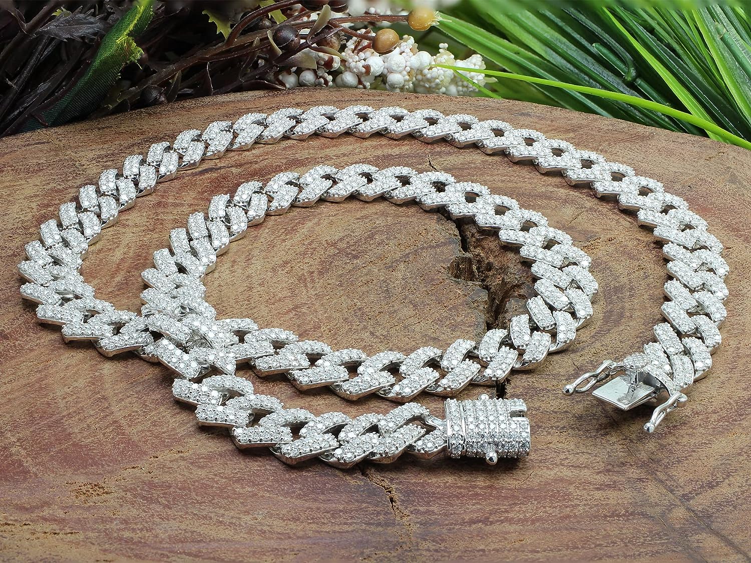 • These Cuban Chain Necklace Is crafted in 14k Rose Gold Over Sterling Silver with 925 Sterling Silver 18" , 20.00 Carat (Cttw) moissanite, Width 12MM, Round Cut, VVS1 Clarity G-H Color, Very Good Cut