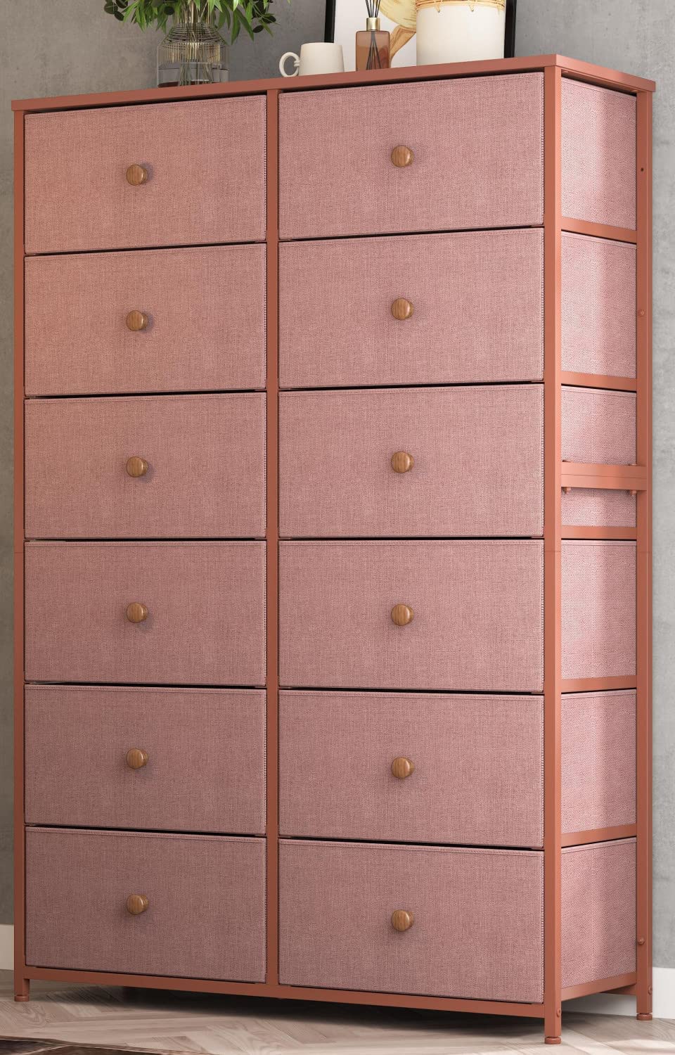 【52.3"H TALL DRESSER FOR BEDROOM WITH 12 FABRIC DRAWERS】According to the needs of the market, we designed the 52.3"h tall chest of drawer for bedroom with 12 removable storage drawers, which takes up a small space, but still providing sufficient storage space to store your clothes, scarves, socks, T-shirts, pants, sunglasses, books and small toys, etc.; keep your room clean and tidy all the time.