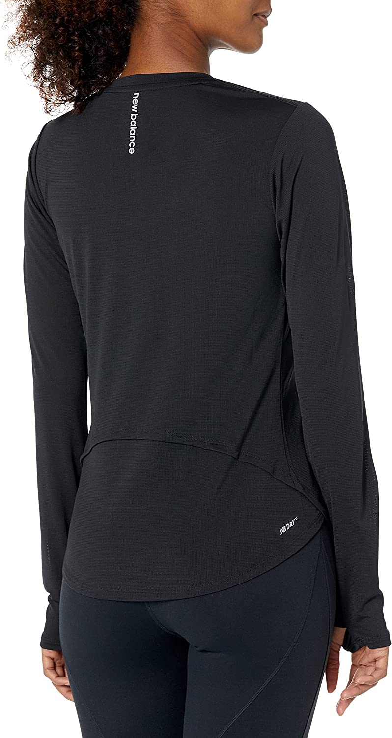 Womens New Balance Accelerate Long Sleeve :: Break a sweat in the Accelerate Long Sleeve polyester performance top with reflective details that helps keep you well ventilated, well-seen and well-motivated to hit the workout.
