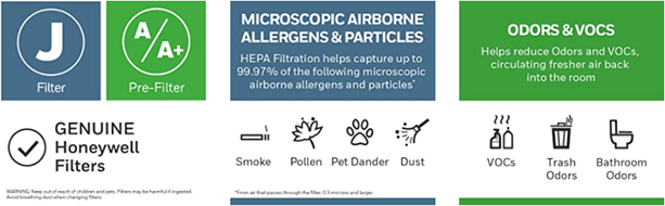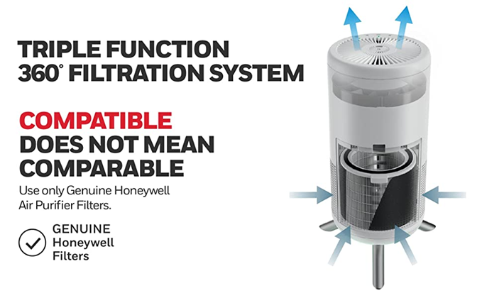 • COMPATIBLE DOES NOT MEAN COMPARABLE – Includes initial filters. For best performance, use only Genuine Honeywell air purifier filters. Compatible air purifier filter replacements are not guaranteed to offer the same filter life, performance or efficiency.