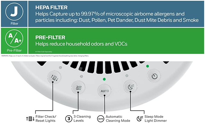 • AIR QUALITY DISPLAY – This Honeywell Air Purifier features a VOC Sensor and Air Quality Indicator that illuminates the floor so you can see air quality from across the room. Automatic Cleaning Mode adjusts to the optimal cleaning level for cleaner air.