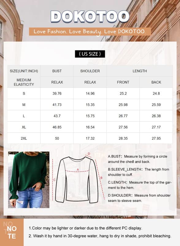 Dokotoo Womens 2023 Summer Long Sleeve Ruffle Bubble Sleeve Casual Loose Shirts Tops and Blouses
