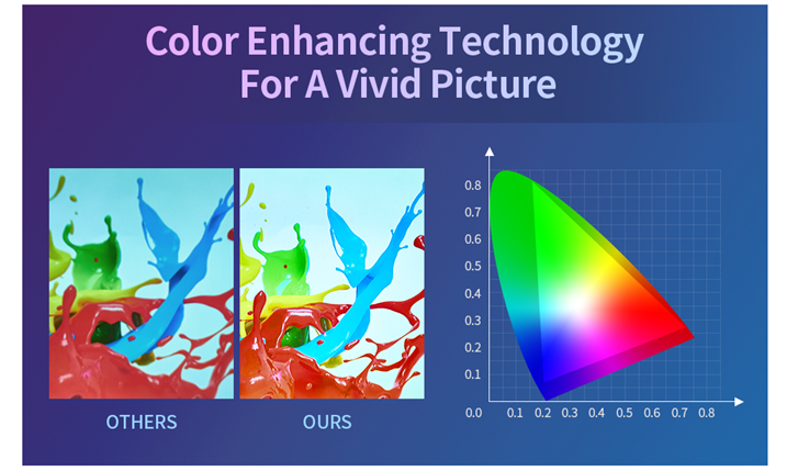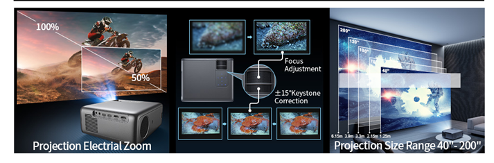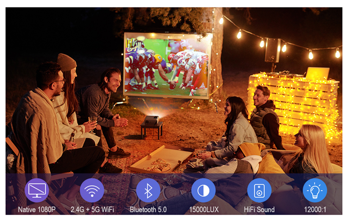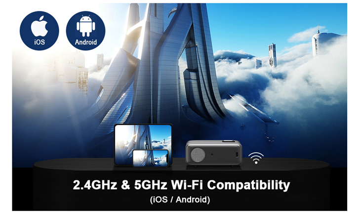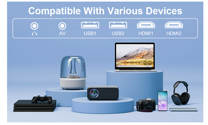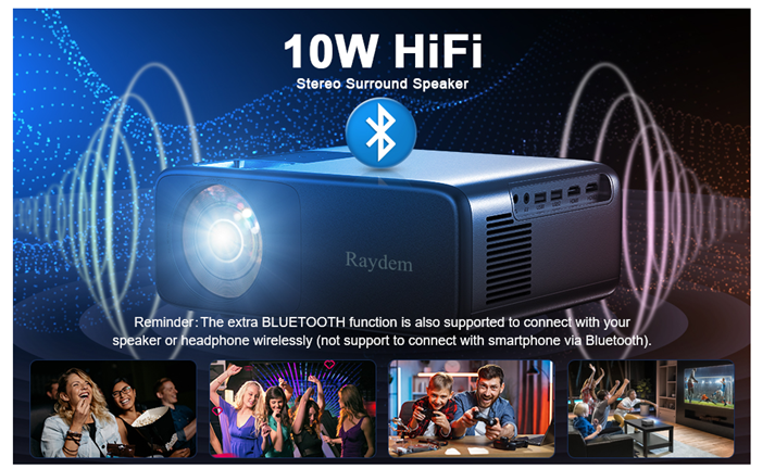 • ?【HiFi Speakers & Low-noise Radiator Fan: 】 We have built-in 10W dual stereo speakers with a HiFi system for a great auditory sense experience. Listen to what you want, not what you don’t with the projector’s optimized low-noise radiator fan, it has a 20% reduction in noise compared to competitors. And because of this improved fan it also helps to extend the life of the projector to 50,000 working hours.