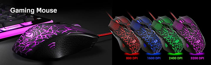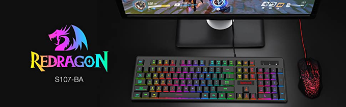 • RGB Keyboard and Mouse Combo; The Redragon S107includes RGB LED 104 Keys Backlit Mechanical Feel Computer Keyboard and Red LED Backlit Gaming Mouse. Ideal for PC marathon gaming sessions
