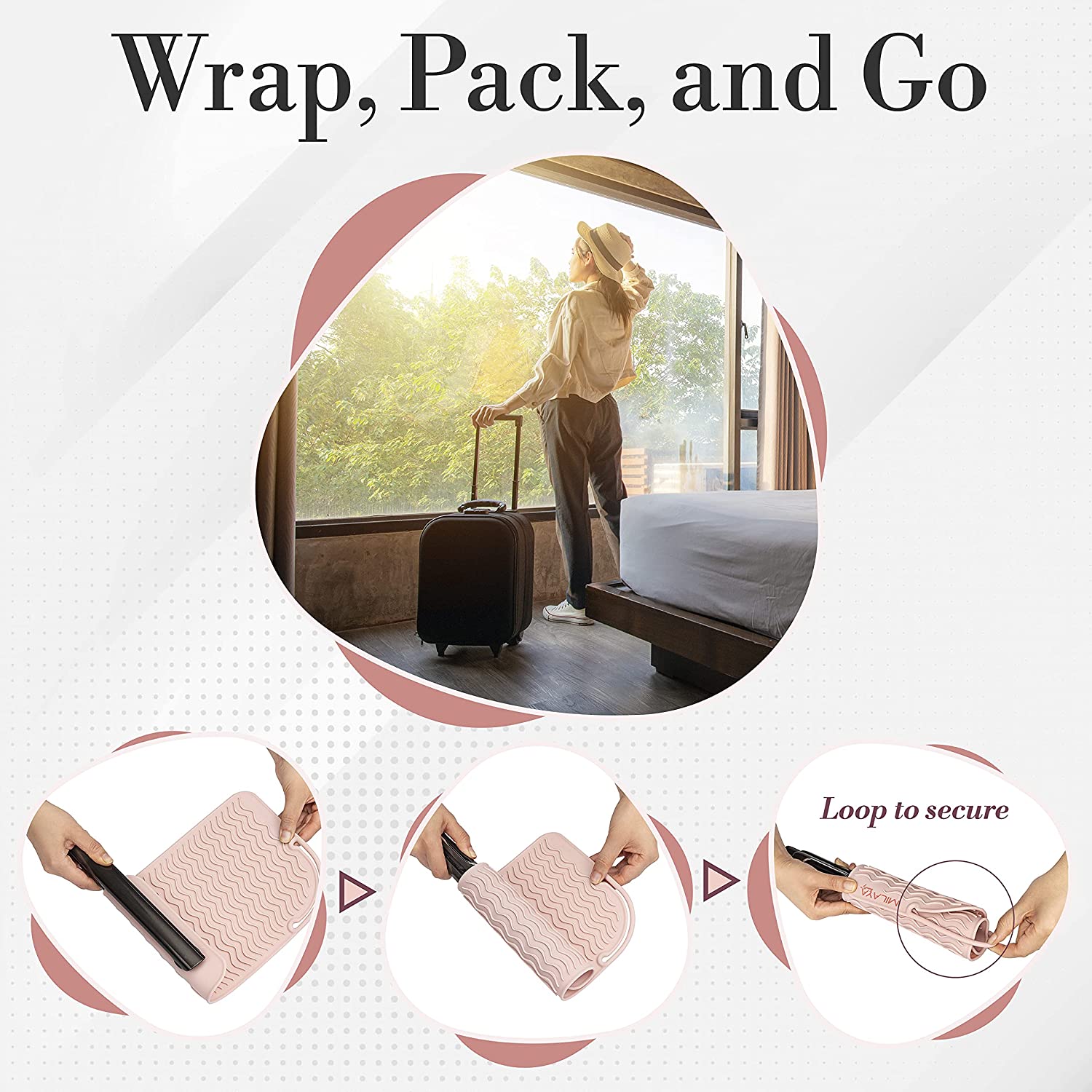 - EASY FOR TRAVEL AND STORAGE - It’s flexible and tex designed allows it to easily wrap around your hair styling tool for safe storage in your drawer or luggage. NO MORE WAITING TO COOL DOWN!