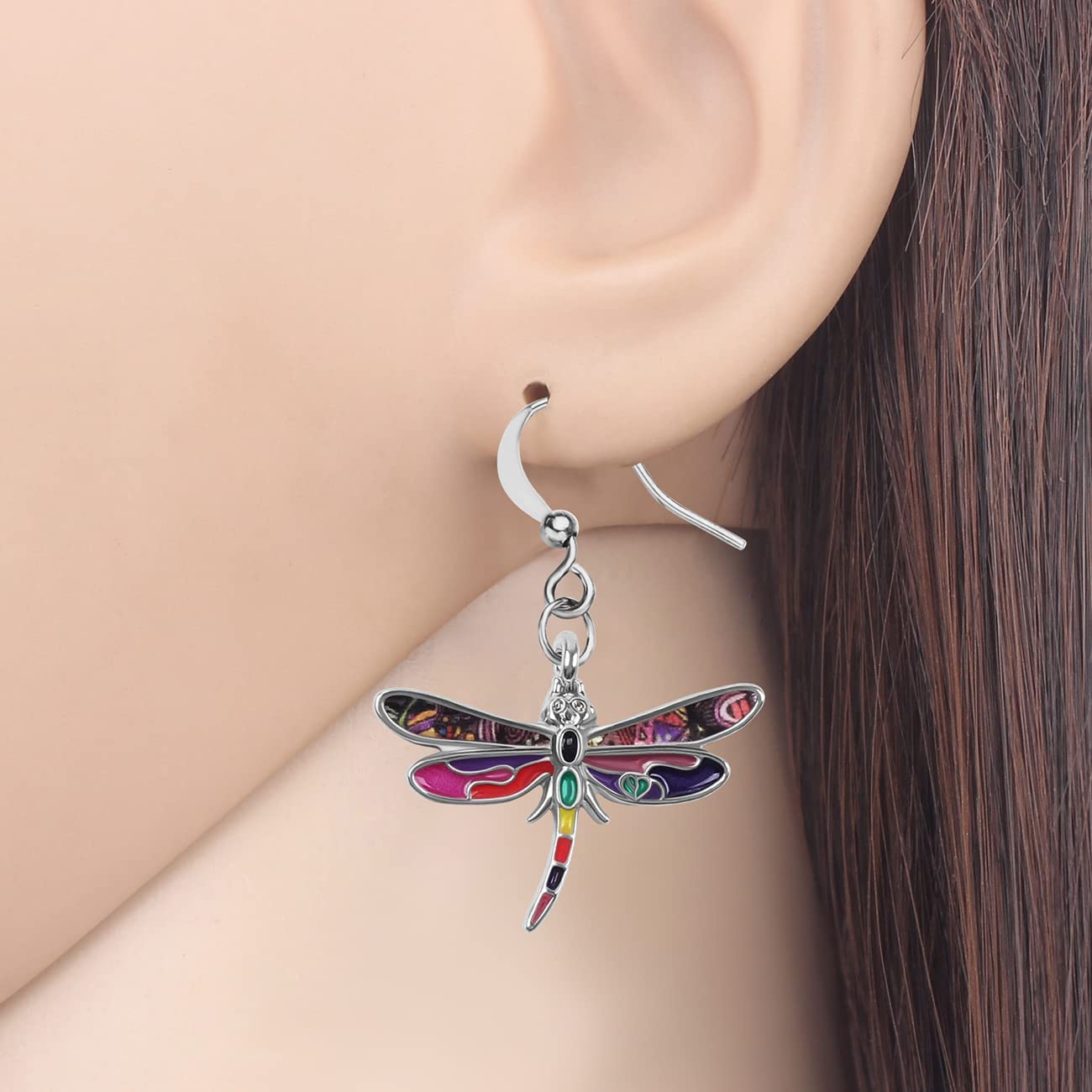Enamel Alloy Cute Dragonfly Earrings for Women Girls Fashion Insect Jewelry Charms Gifts