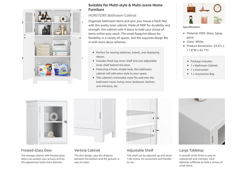 • Maximize the Storage: Fancy a fuss-free bathroom update? Try this storage cabinet and ready to fill with toiletries, toothbrushes, cleaning products and more. Inside, it has adjustable shelf heights to meet your needs