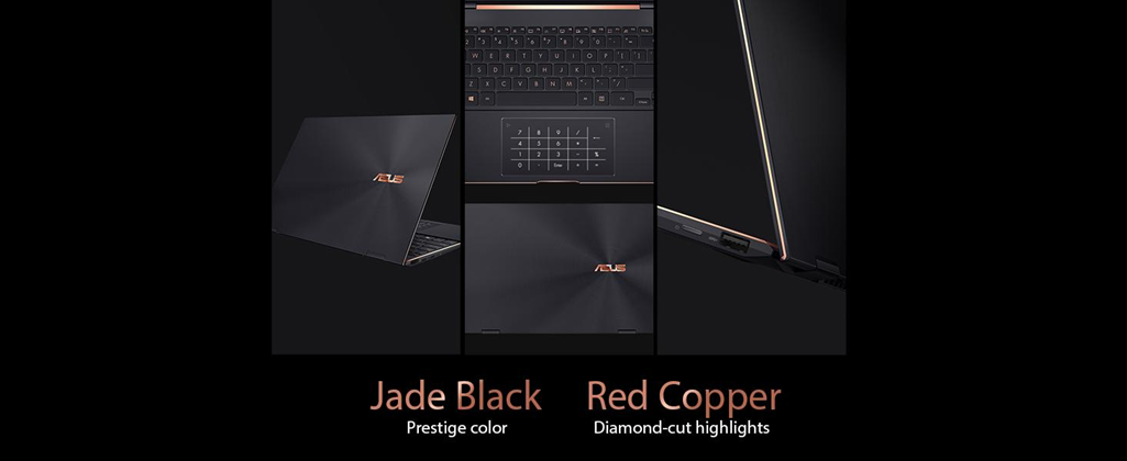 ZenBook Flip S is supremely elegant, with Red Copper diamond-cut highlights that perfectly complement its timeless Jade Black finish. A mirror-polished deco bar adds a subtle finishing touch, creating a luxurious overall look that stands out from the crowd without being extravagant.