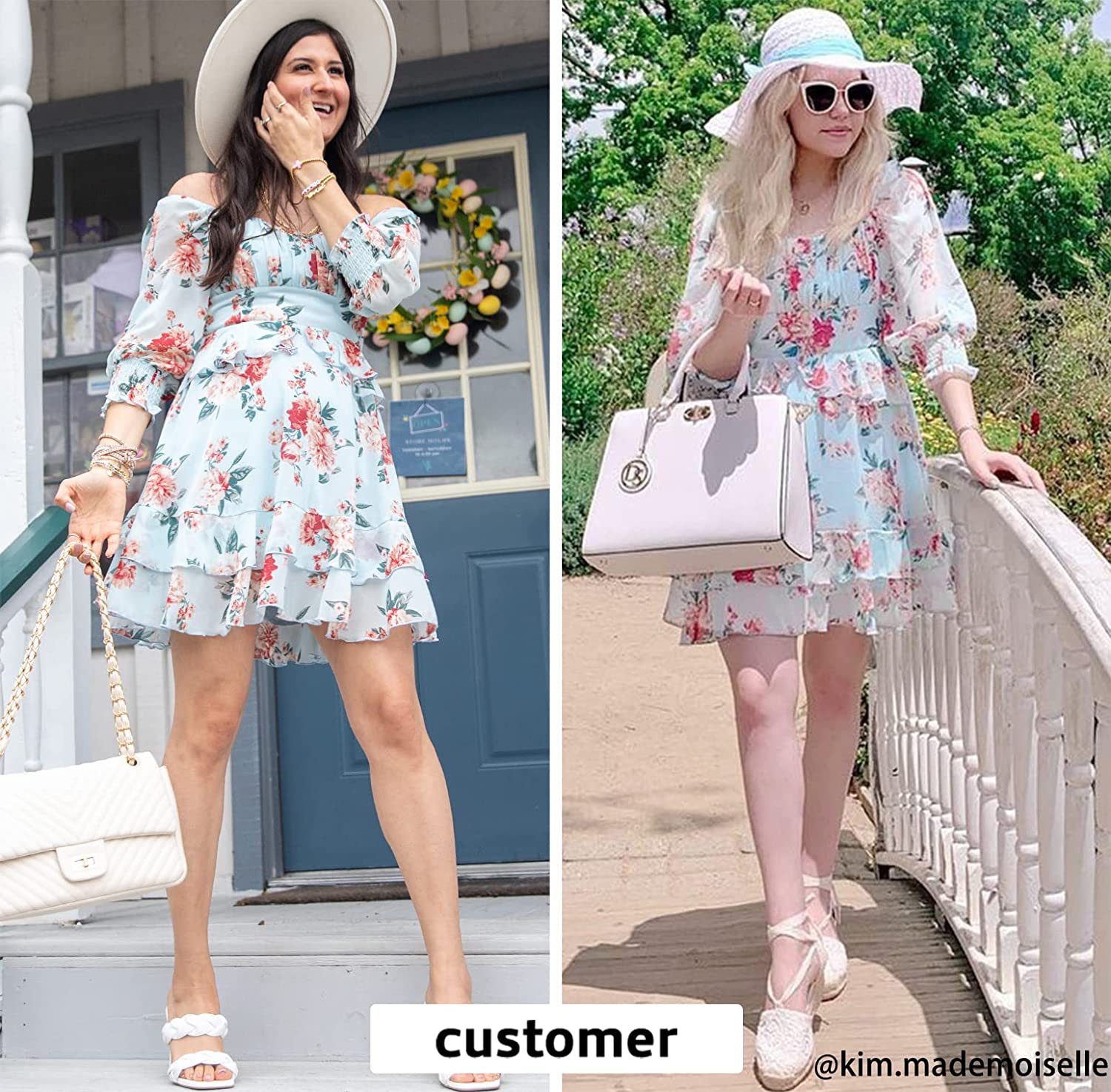 Feature: Summer dresses for women 2022, The square neck or off shoulder dress adds a sexy touch by showing off your long neck and attractive collarbones as well as provides adequate coverage. The decorative ruffle hem helps camouflage your belly and creates a flattering effect. Additionally, the dress works well on any body shapes for its smocked design. The high waist mini dress produces a lengthening, slimming effect and floral pattern brings a sense of romance and elegance.