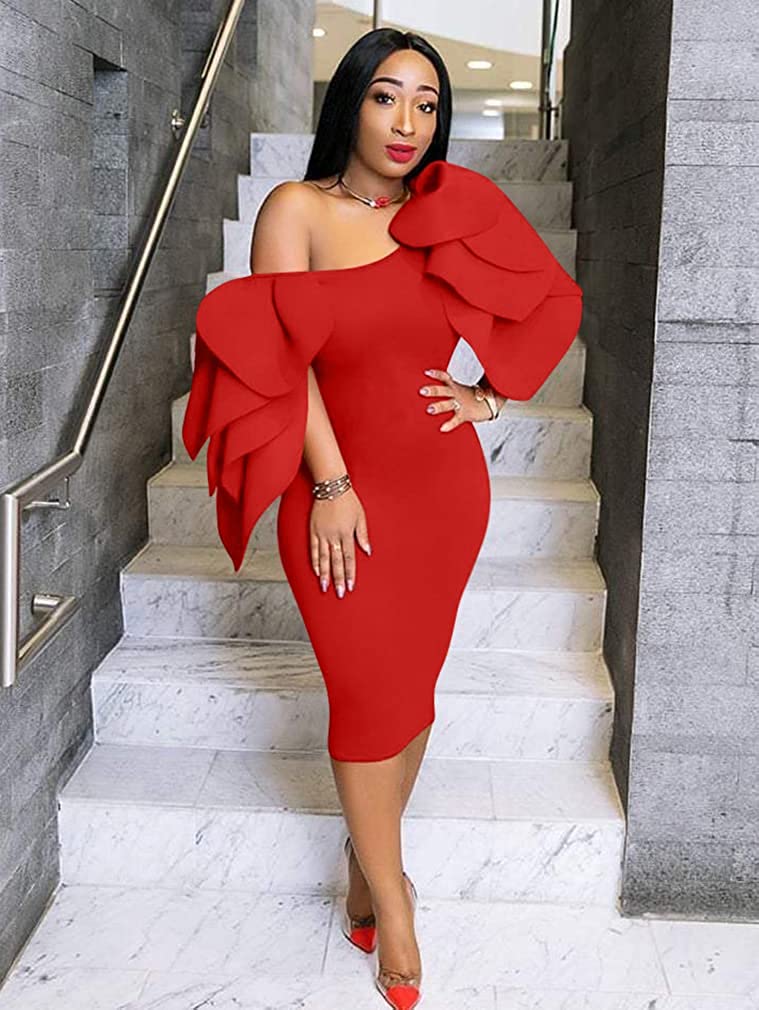 It can be worn in two ways: one shoulder dress and round neck dress,no matter which way you wear it, it can perfectly show your body curve.