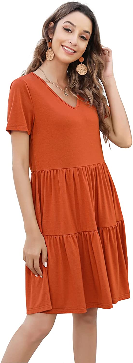 Match: Ruflle tunic flowy dresses for women is great pair with high heels, sandals or boots, tights, leggings, hat, or simply laying with coats, jackets in spring, fall and winter. You will leave a fantastic impression on vacation. Above knee length floral dress and flowy swing shift A-Line dress make you elegant and radiant. Super cute and beautiful babydoll mini dress can add your vitality and also nice for juniors dresses.