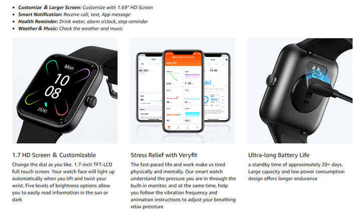- 【1-Year Warranty Promised & Wide Compatibility】Compatible with iPhone, Samsung etc., built-in BLE5.0 and 300mAh lithium-ion battery. Our free APP "VeryFit" supports iOS 9.0 / Android 6.0 or above smartphones. If you have any questions, please don’t hesitate to contact us with any problem