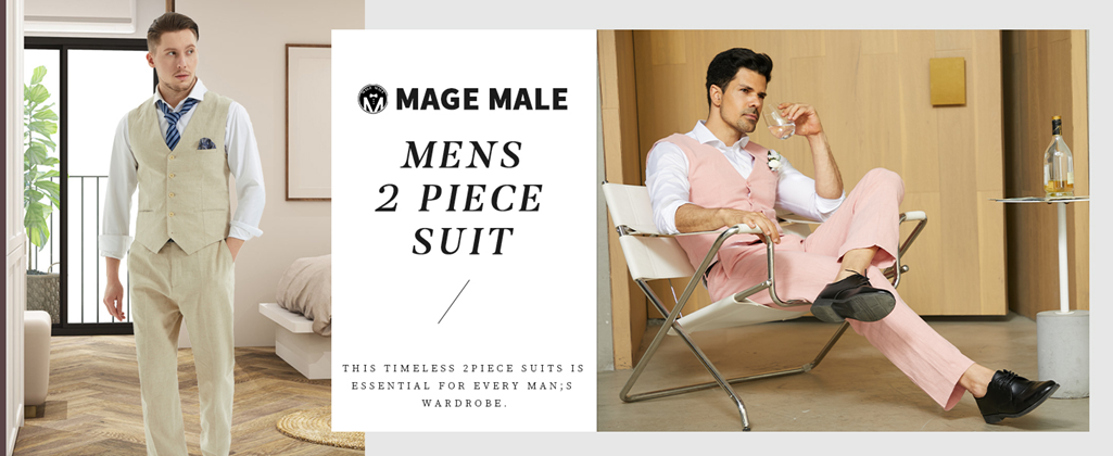 MAGE MALE Men's 2 Piece Slim Fit Linen Suit