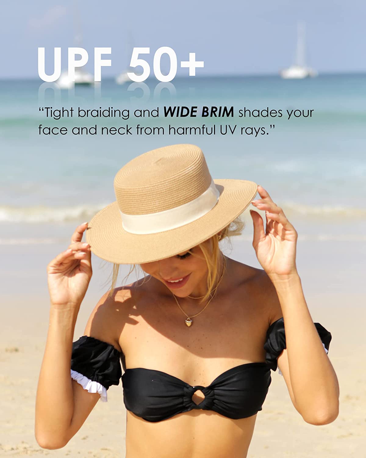 Stylish and Classic Boater Hat : The straw skimmer hat has a classic shape with a flat crown and brim; The chic straw hat has a neutral cut, elegant brim and will top you off in style and you'll want to wear it on for any outside activity and any occasion; ; And there are several colors for both men and women to match any outfit,Whether casual or formal;you can carry it to anywhere you want to go. It's perfect for beach, travel,party ,church functions, race day events, etc;