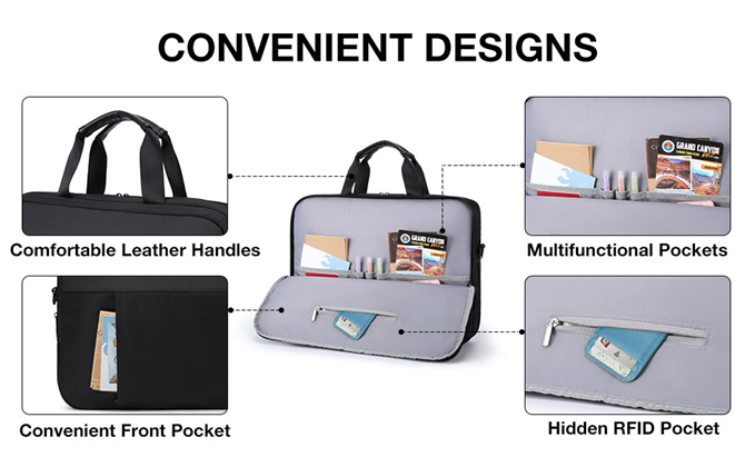 • LAPTOP PROTECTION- The dedicated laptop compartment is fully padded with EVA foam. The laptop bag can offer the optimal protection for your laptop. You don't need to worry about your notebook getting crashed on the travelling.