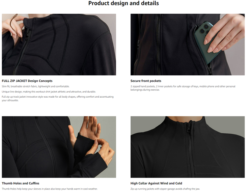 The back splice is hollowed out, unique line design, making this workout shirt jacket athletic, attractive and durable.