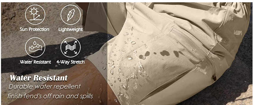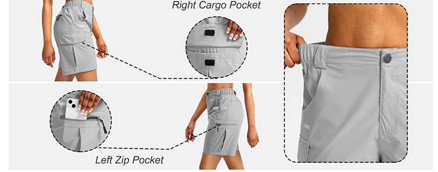 • ELASTIC WAIST & BUTTON CLOSURE: Classic hiking shorts design button closure with zip fly. Elastic waist with belt loop offer more flexible for a personalized fit .