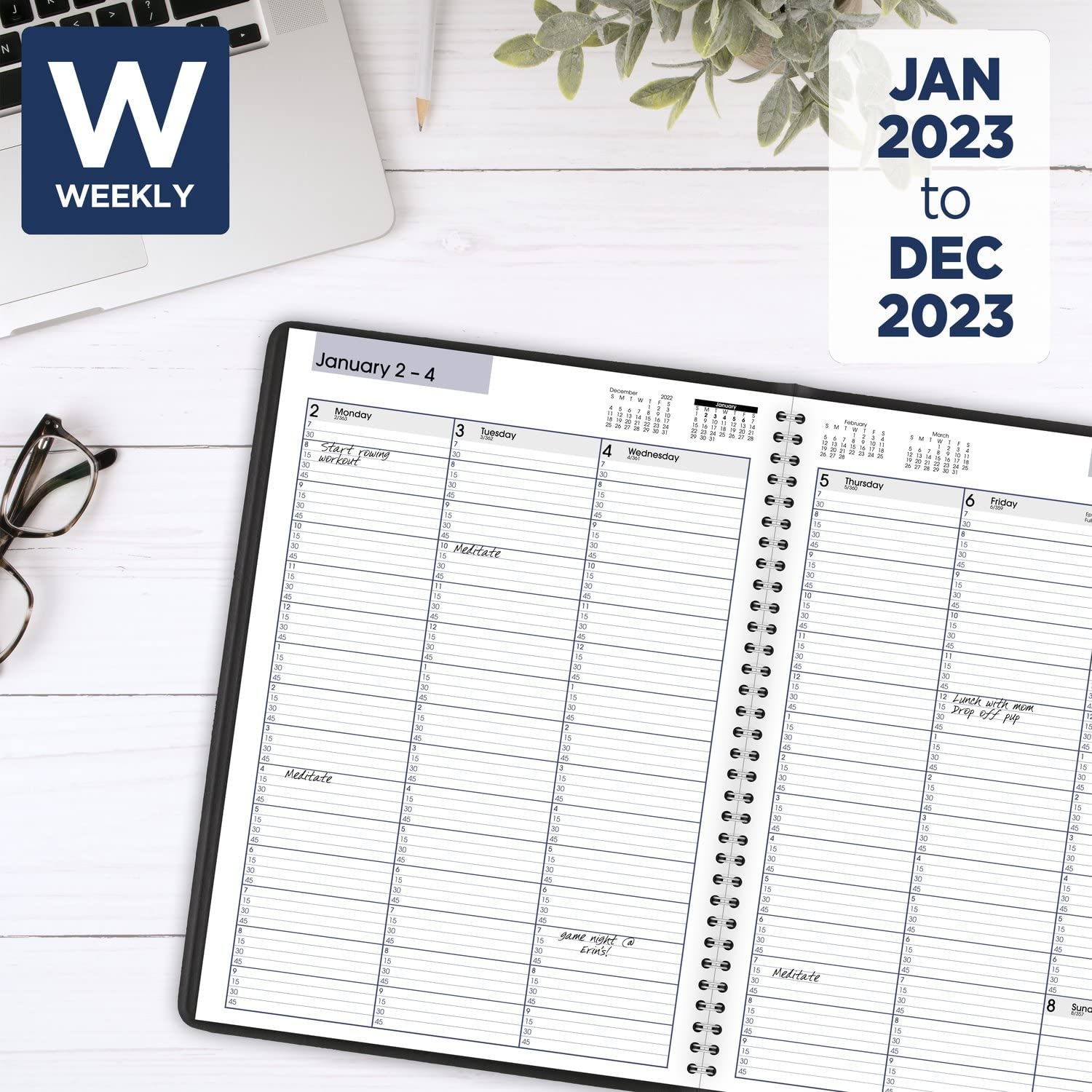 AT-A-GLANCE 2023 Weekly Planner, DayMinder, Quarter-Hourly Appointment Book, 8" x 11", Large, Black (G52000)