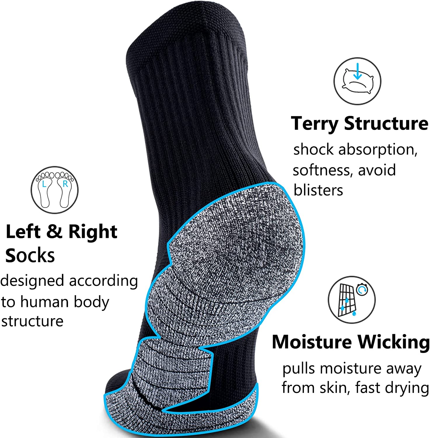 UNIQUE SOLE: Design LEFT AND RIGHT SOCKS according to the plantar structure; Combed Cotton and Tech-dry yarns; Cushioned, more soft and comfy, shock absorption