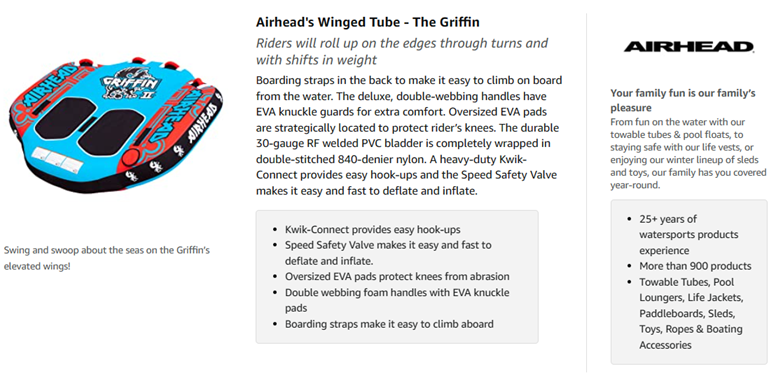 | Included Components | AIRHEAD GRIFFIN 2 Person Towable Tube |