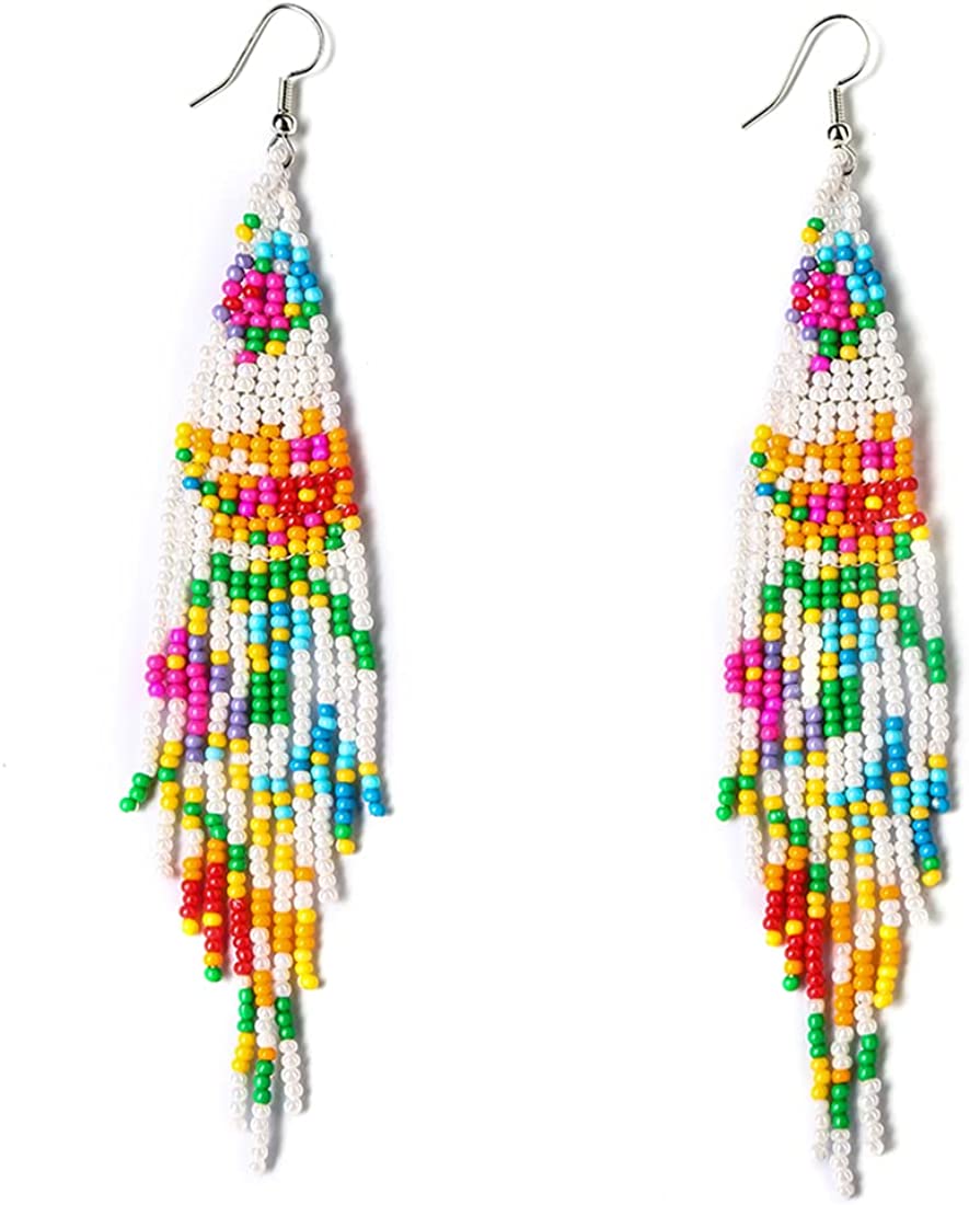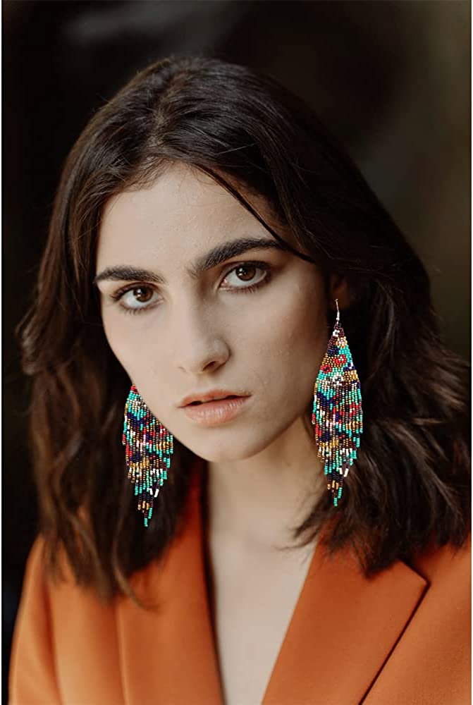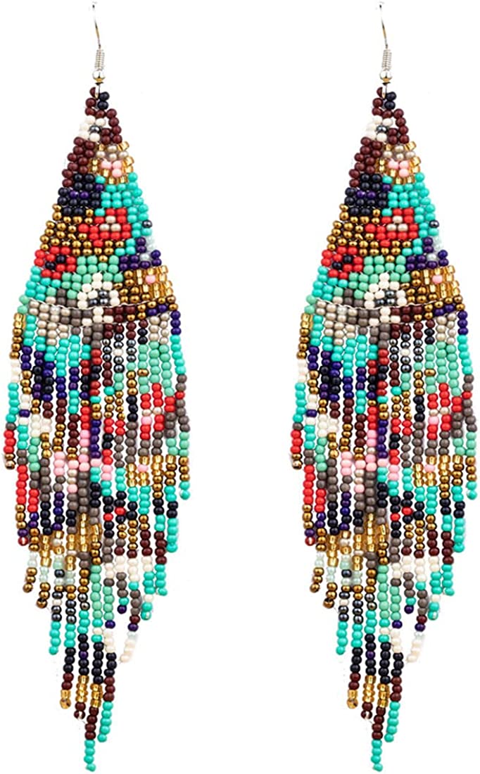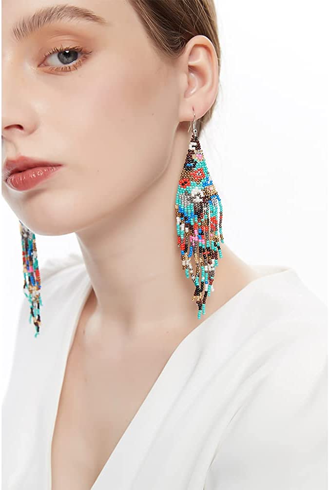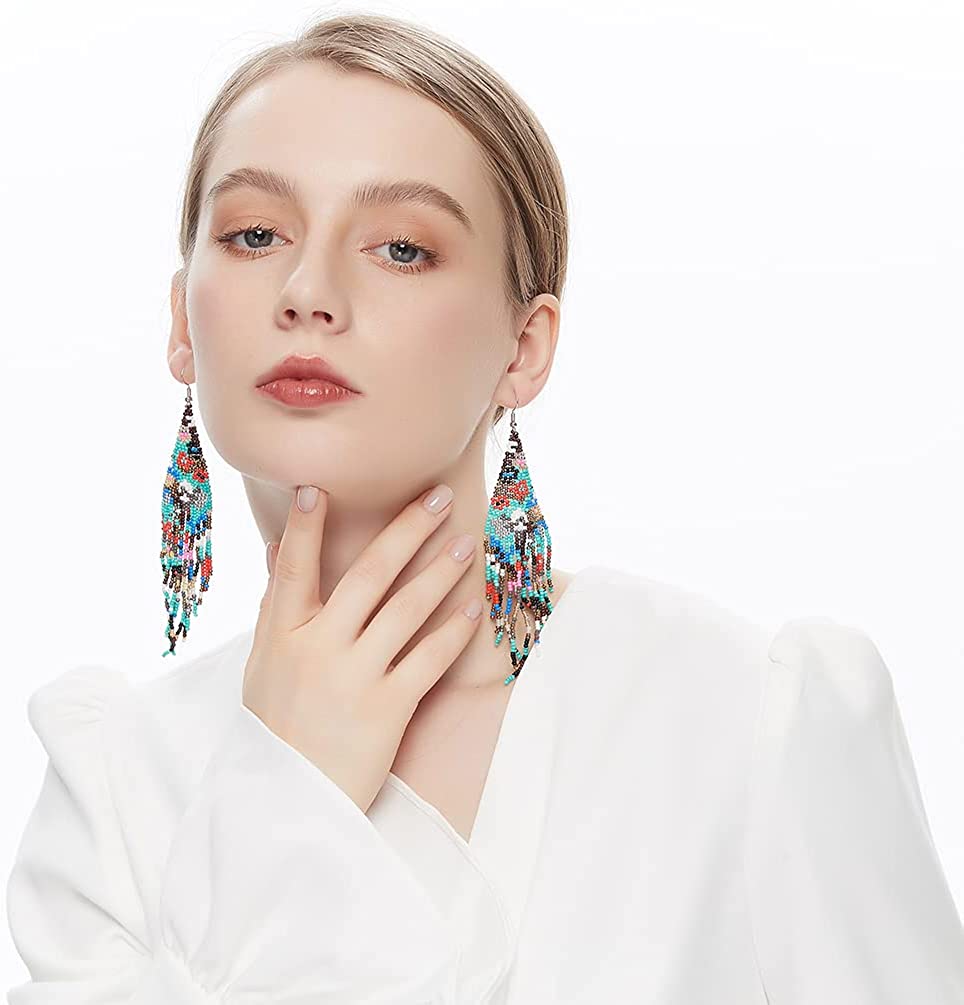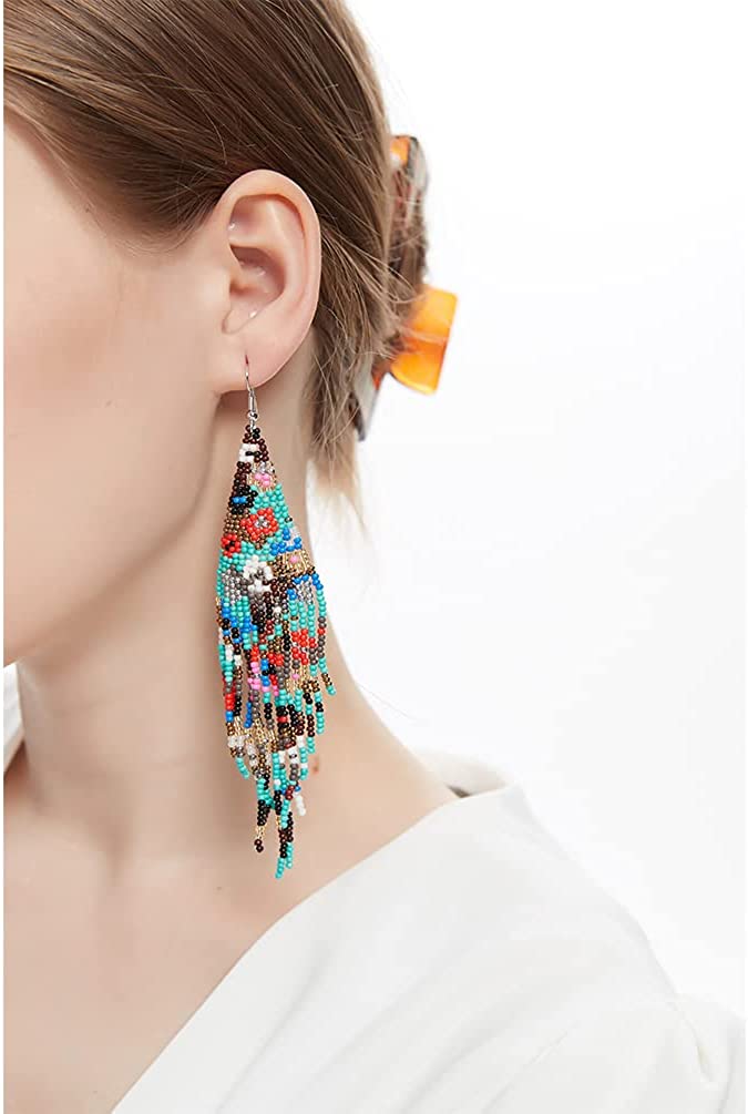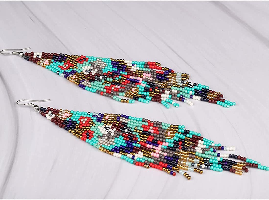 Name: Long Beaded Tassel Earrings – Native Handmade Big Beaded Flower Bohemian Statement Chandelier Drop Earrings for Women Girls, Mexican Large Boho Seed Bead Fringe Dangle Earrings Color: white flower, pink flower, black flower, grey flower, green flower, brown flower and colorful flower native beaded tassel earrings for women Material: Seed beads and string Length: 57 Inch / 145cm Weight: 15g/pair Package: 1pair