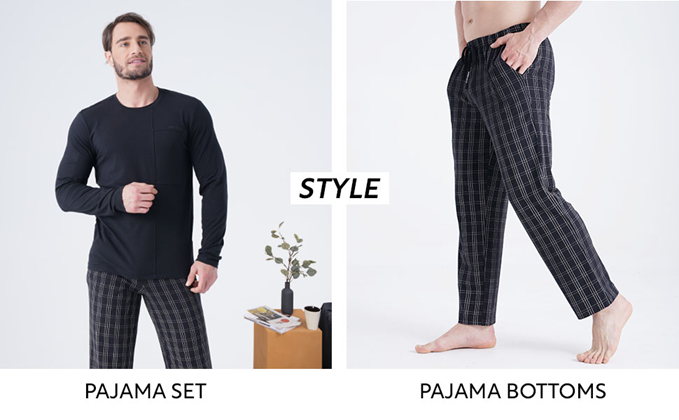 Simple Contrast Design: The highlights the neckline cuffs and bottoms with twill contrast,adhere to the "simple yet stylish, simple yet trend" as the men's pajama set design